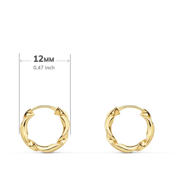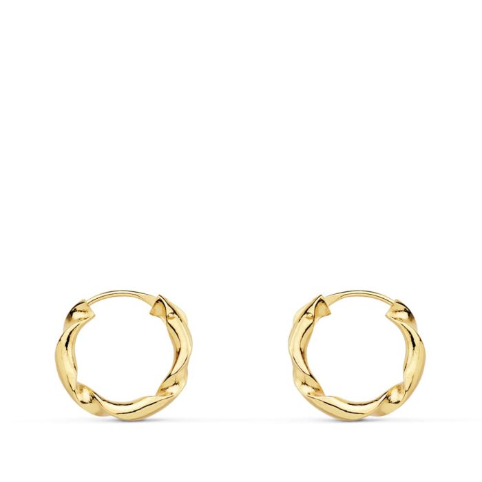 18K AROS ORO AMARILLO HUECOS RETORCIDOS. 12X2 MM