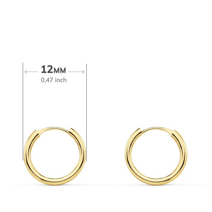18K AROS ORO AMARILLO REDONDOS LISOS LIGEROS 12X1.50 MM