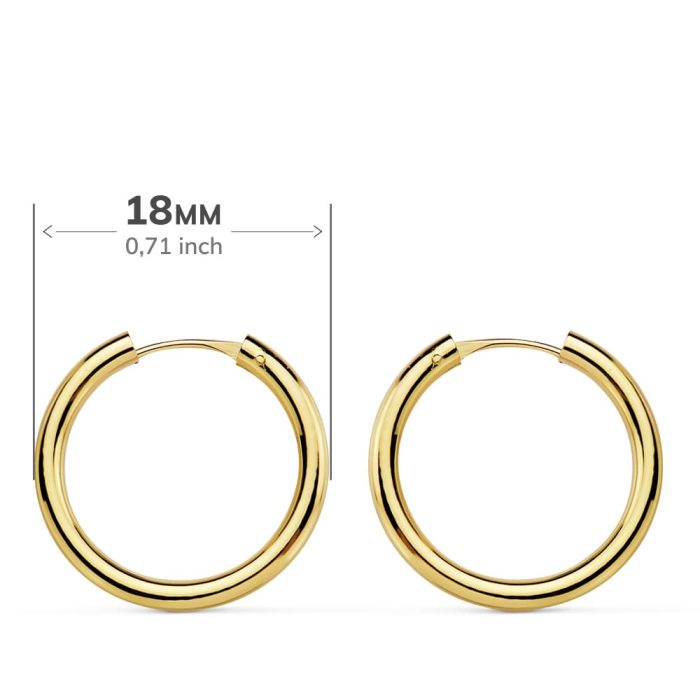18K AROS ORO AMARILLO REDONDOS LISOS LIGEROS 18X2 MM
