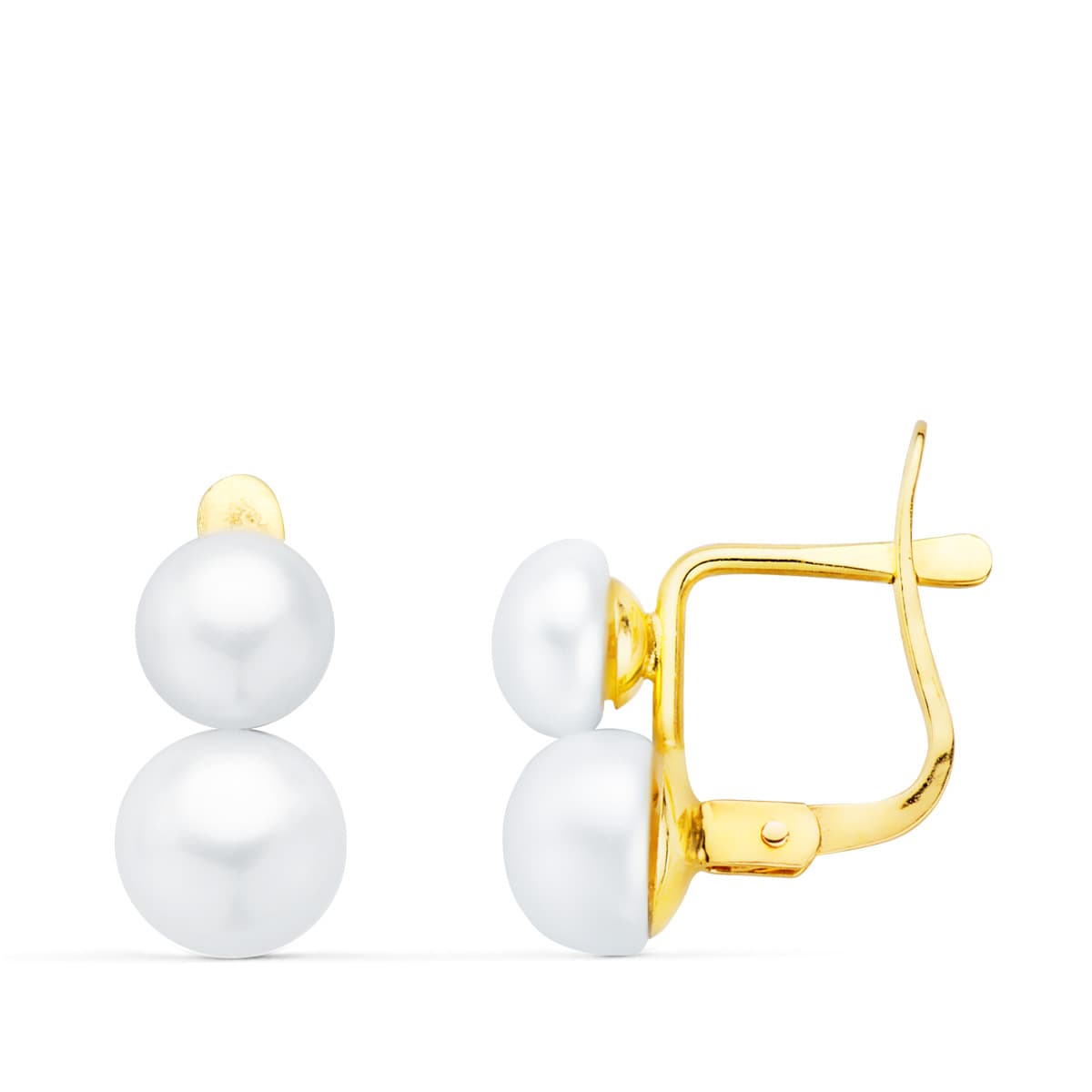 18K PENDIENTES ORO AMARILLO TU Y YO PERLA 11X6 MM CIERRE CATALAN