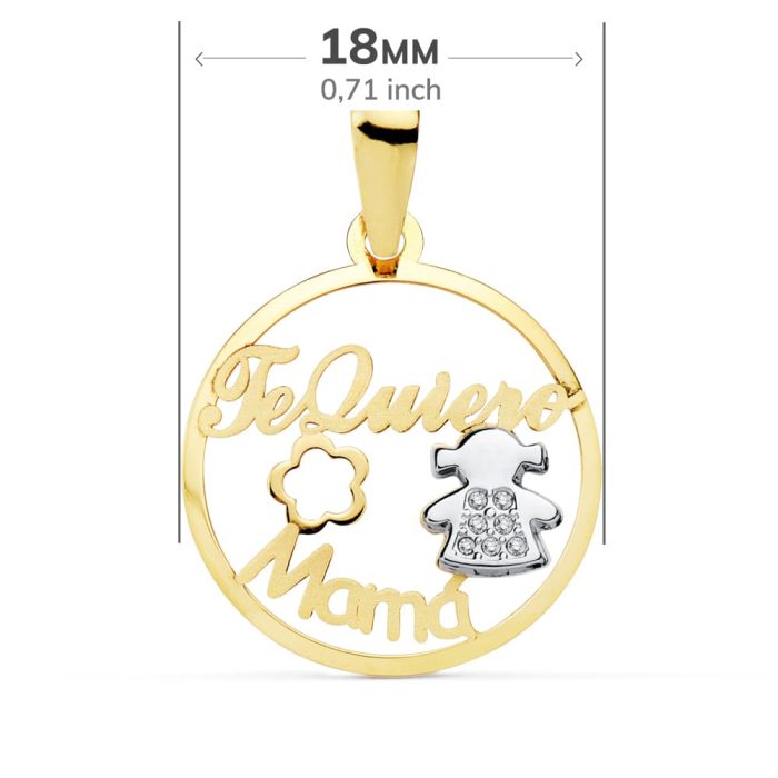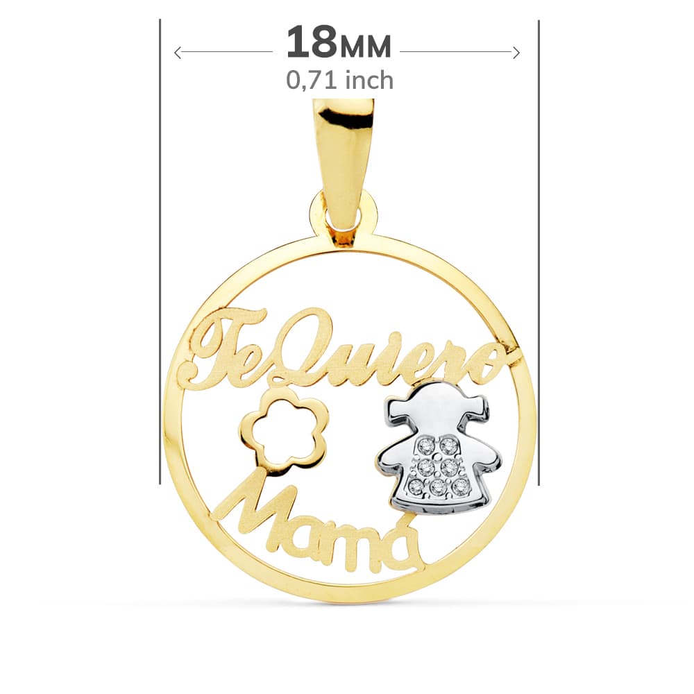 18K COLGANTE MAMA BICOLOR NIÑA Y FLOR 18 MM