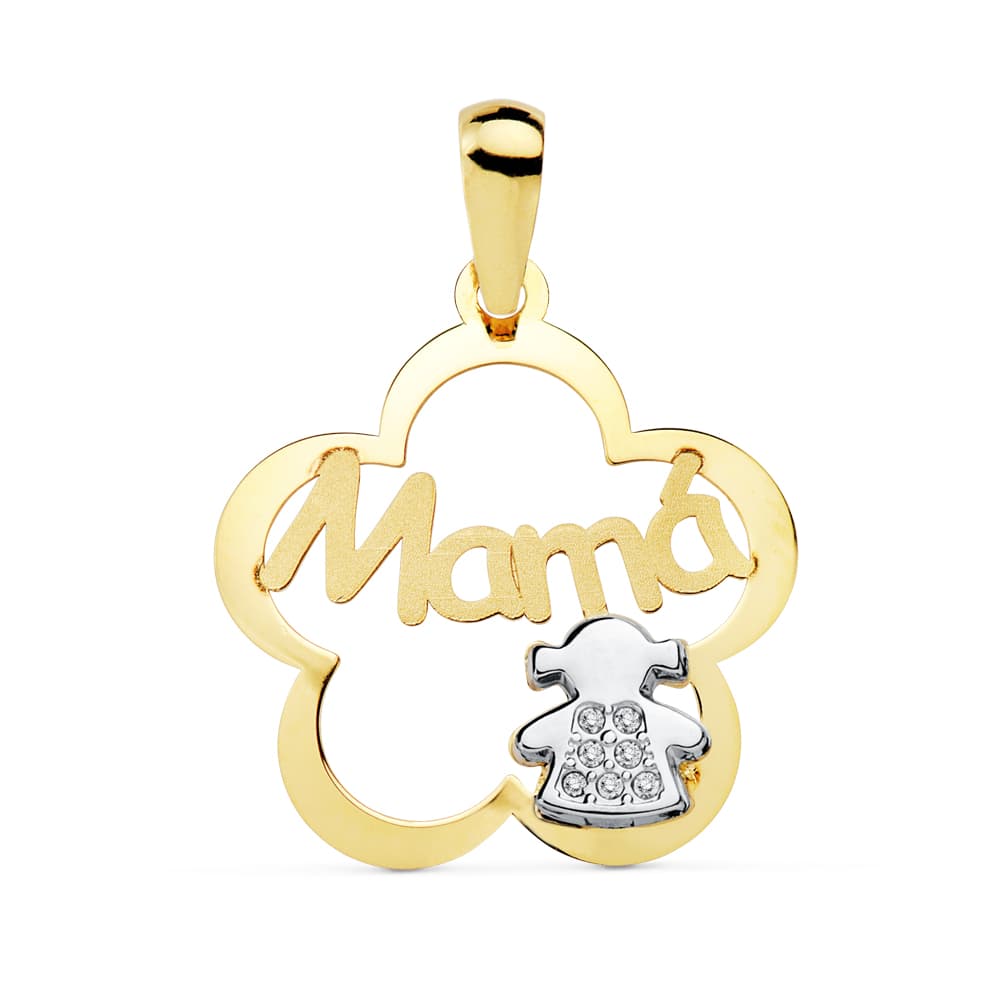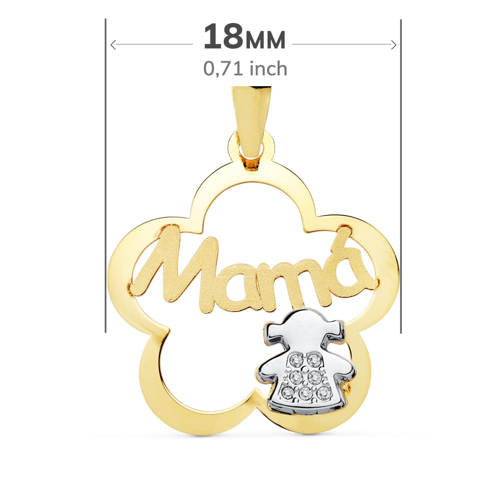 18K COLGANTE MAMA FLOR BICOLOR NIÑA 18 MM