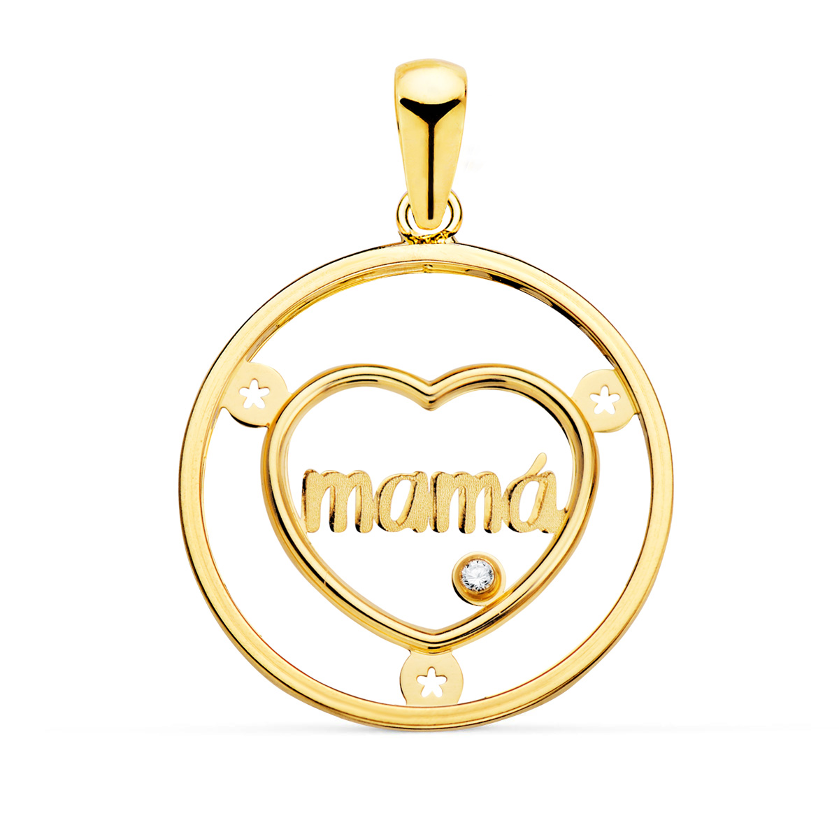 18K COLGANTE ORO AMARILLO CORAZON CON MAMA Y CIRCONITA REDONDO 20MM