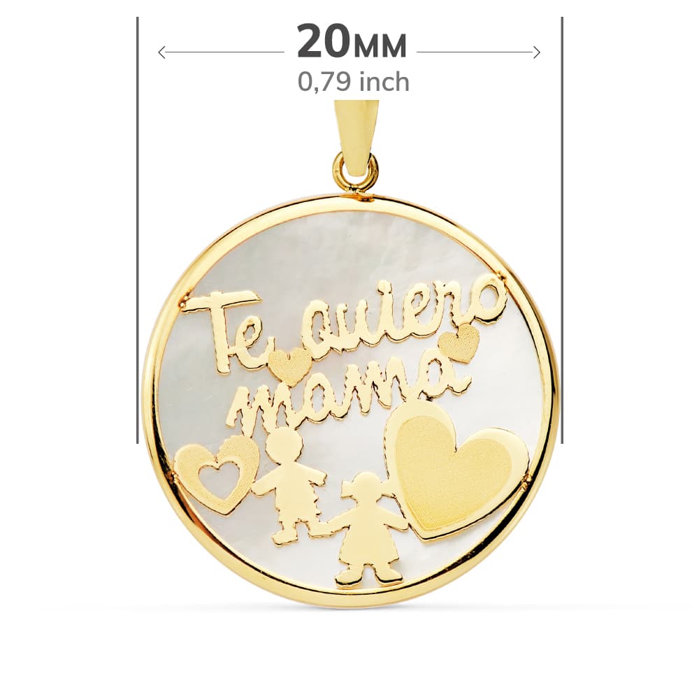 18K COLGANTE ORO AMARILLO MAMA NACAR NIÑO Y NIÑA 20 MM
