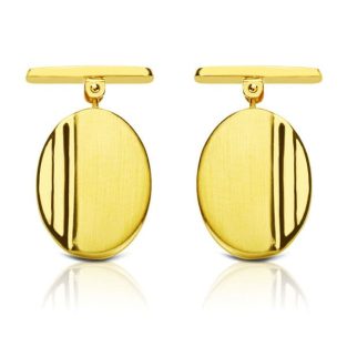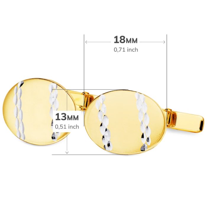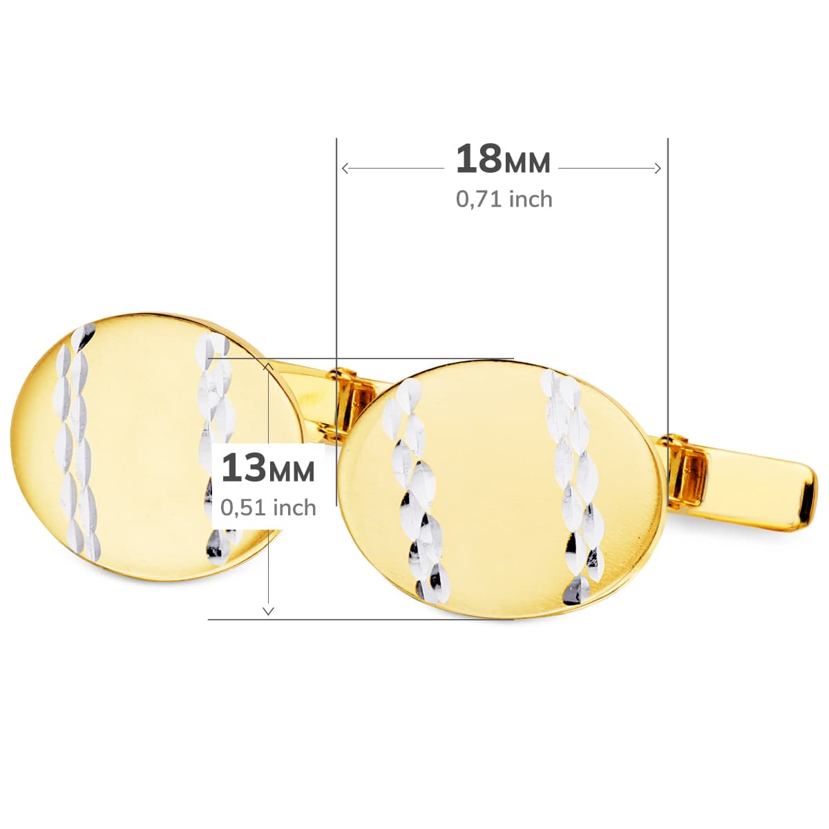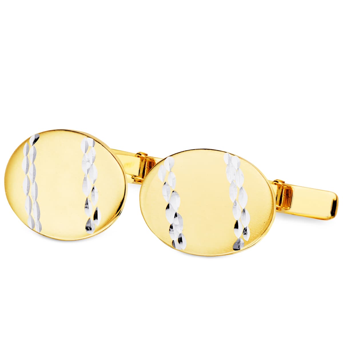 18K GEMELOS ORO BICOLOR OVAL BANDA TALLADA 18X15 MM CIERRE RIGIDO OSCILANTE