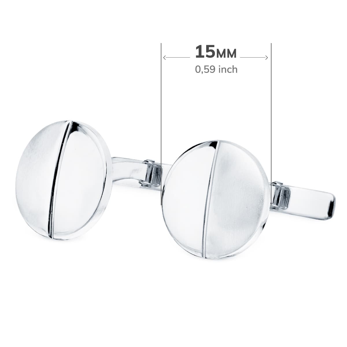 18K GEMELOS ORO BLANCO REDONDOS MATE Y BRILLO 15 MM CIERRE RIGIDO OSCILANTE