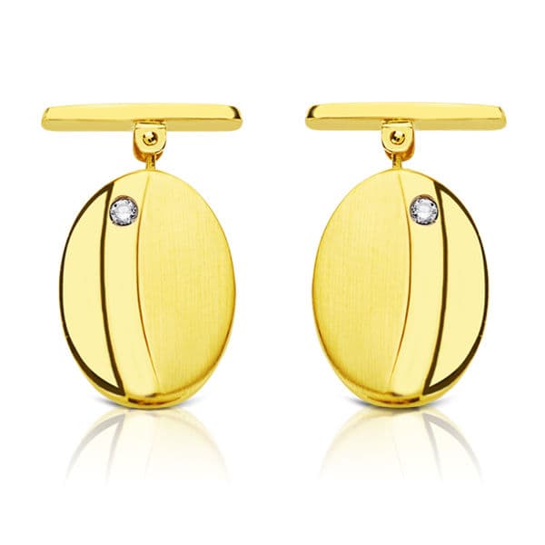 18K GEMELOS OVALES CIRCONITA MATE Y BRILLO 13X18 MM