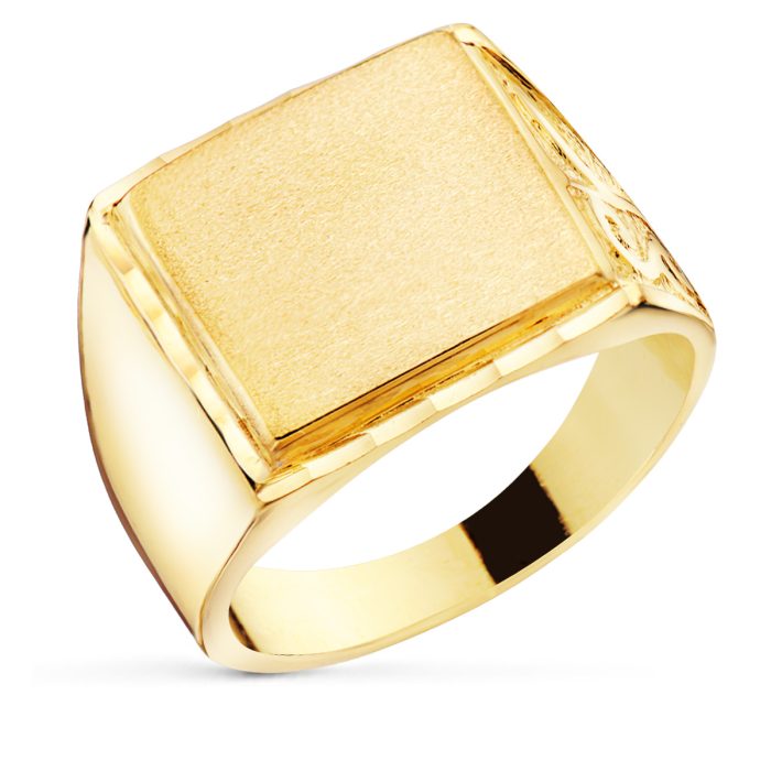18K SELLO ORO AMARILLO CABALLERO MACIZO TALLADO ZONA GRABACION 14X14 MM