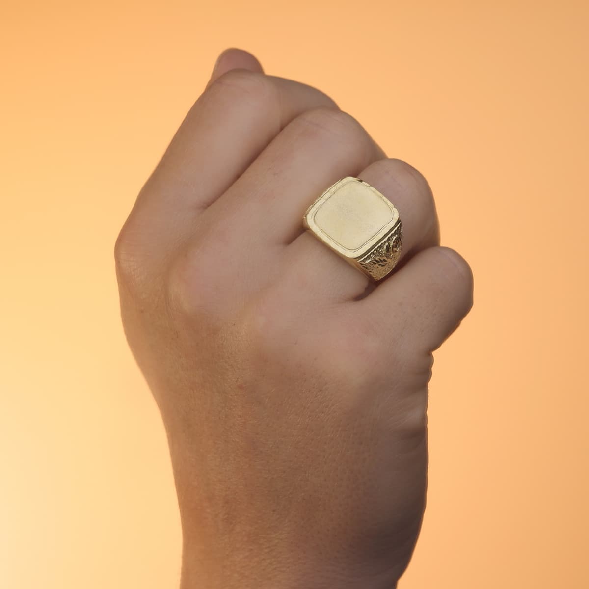 18K SELLO ORO AMARILLO CABALLERO MACIZO TALLADO ZONA GRABADO 18X16 MM