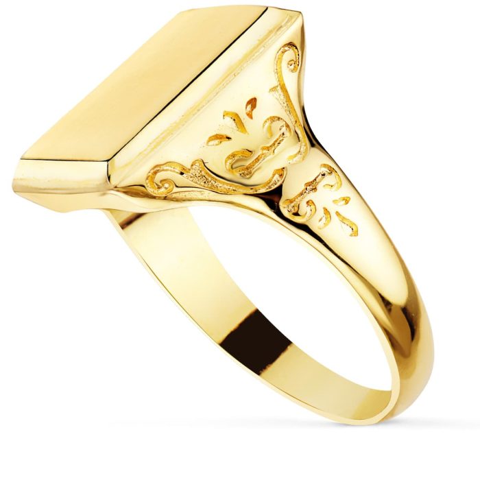 18K SELLO ORO AMARILLO CON TALLADOS LATERALES CABEZA RECTANGULAR 13X10 MM