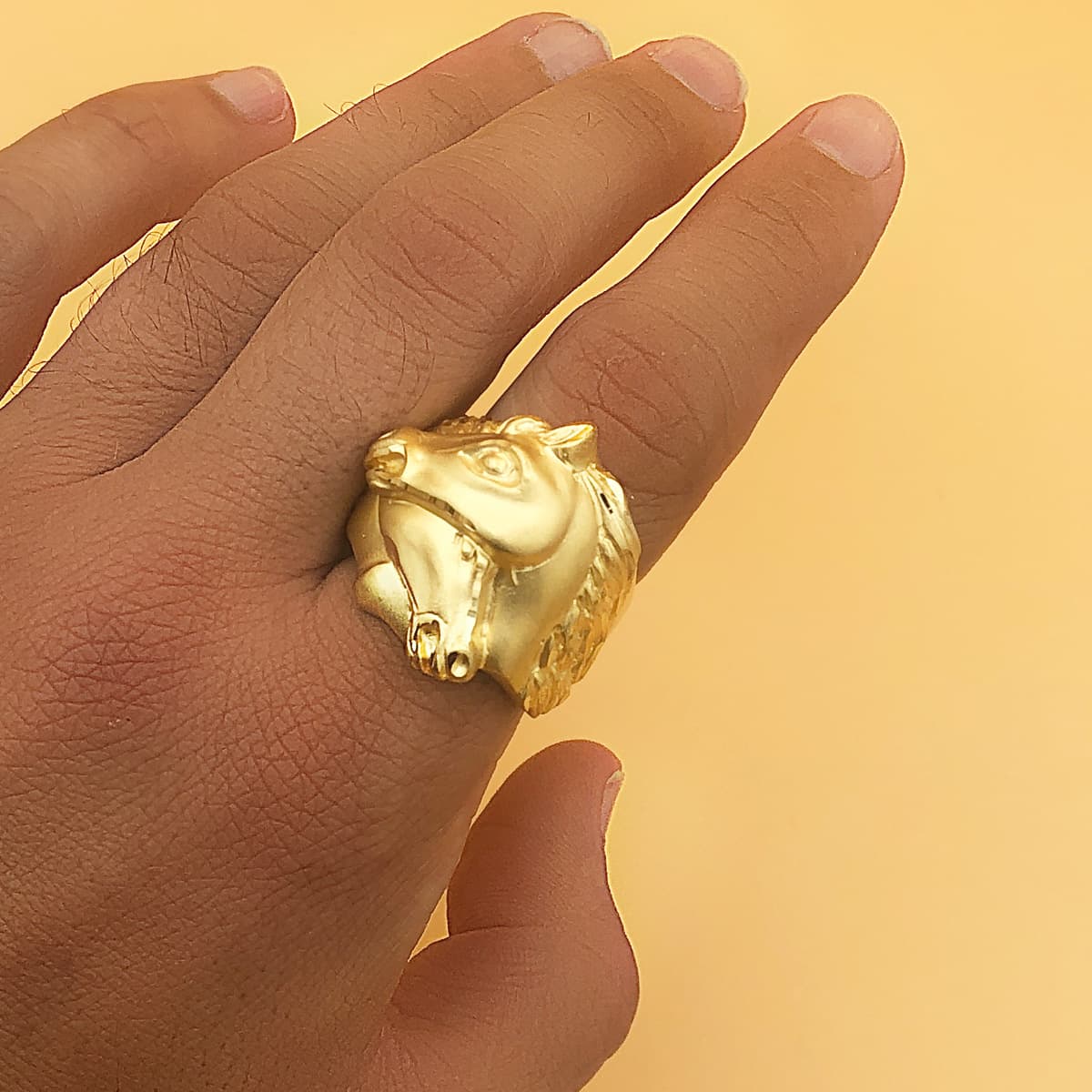 18K SELLO ORO AMARILLO MACIZO CABALLOS ENTRELAZADOS LATERALES TALLADOS