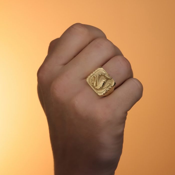 Sumérgete en el lujo eterno con este Sello de Oro de Ley de 18 Kilates, una obra maestra de elegancia atemporal. Cada detalle del 18K SELLO ORO AMARILLO SERPIENTE COBRA LATERAL TALLADO ANCHO 20X20 MM, meticulosamente elaborado por artesanos joyeros, captura la riqueza radiante y la distinción inigualable. Un símbolo perfecto de sofisticación para los amantes de la exquisitez. Además este Sello está fabricado por el prestigioso fabricante de joyería Pérez Mora de Córdoba, cuna de la joyería de Oro en España.