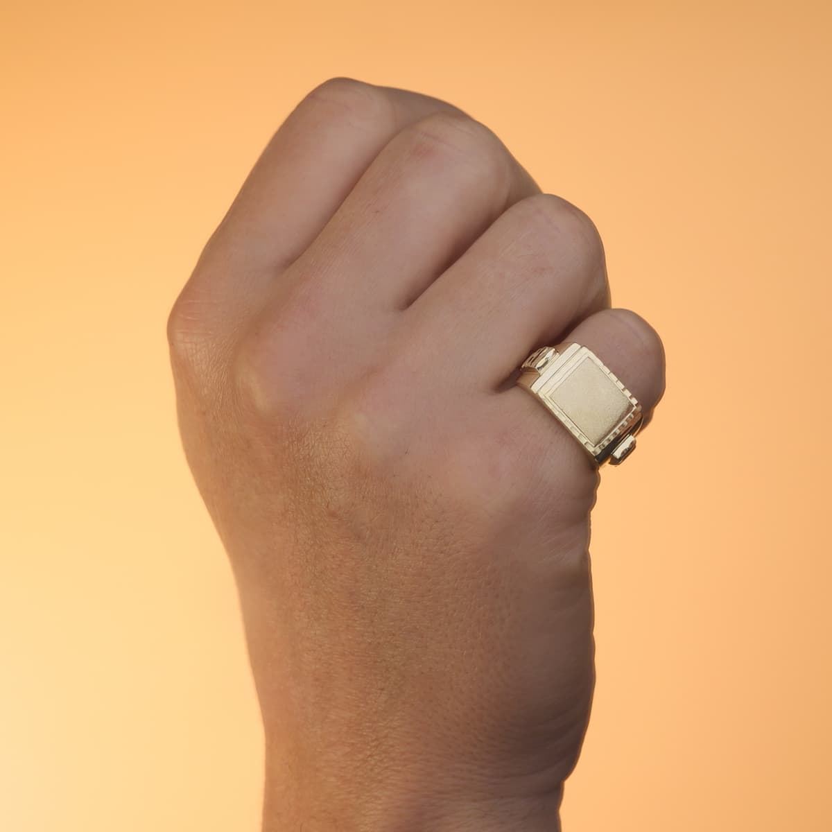 18K SELLO MACIZO CABALLERO ORO AMARILLO TALLADO CABEZA CUADRADA 20 X15 MM