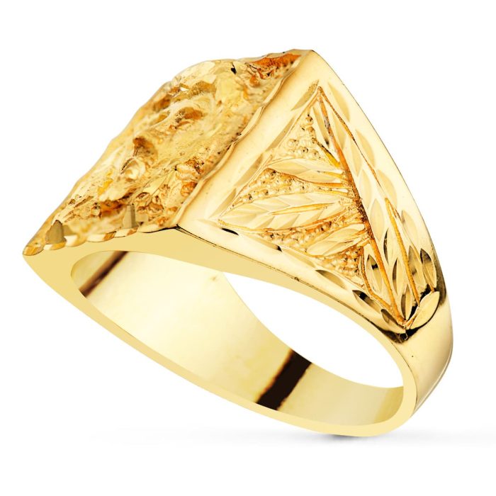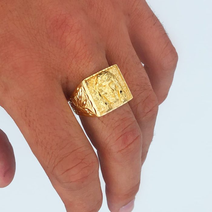 18K SELLO ORO AMARILLO MACIZO CAMARON TALLADO 16X18 MM