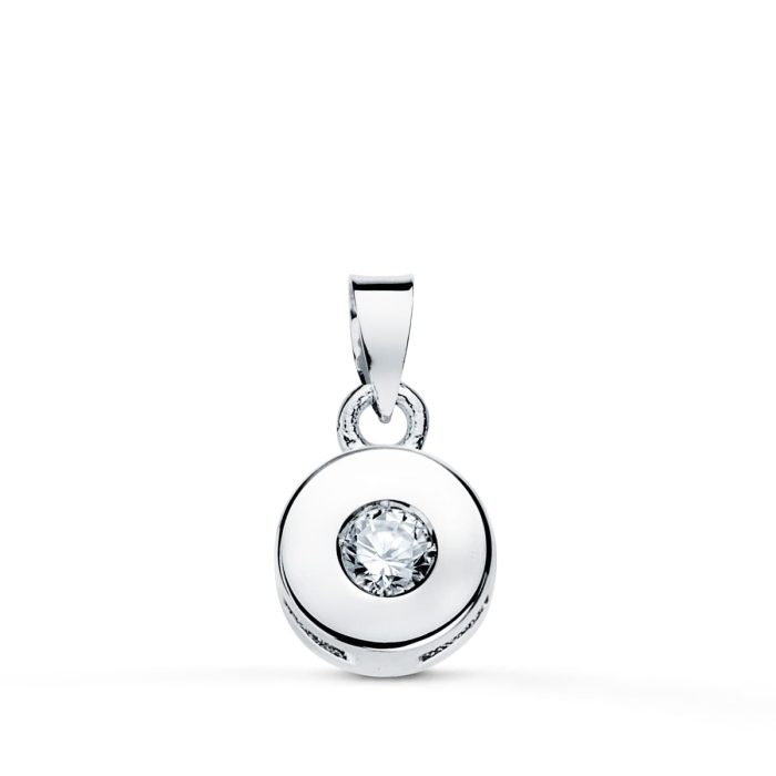 18K COLGANTE ORO BLANCO CHATON 6 MM DIAMANTE TALLA BRILLANTES 0.065 QTS SI-H