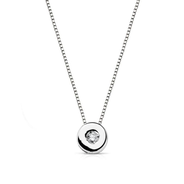18K GARGANTILLA ORO BLANCO CHATON DIAMANTE 0.02 QTS. H-I CADENA 42 CM