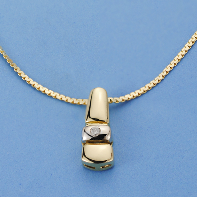 18K COLGANTE ORO AMARILLO BRILLANTE 16X6 MM 0.05 QTS. CADENA 42