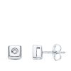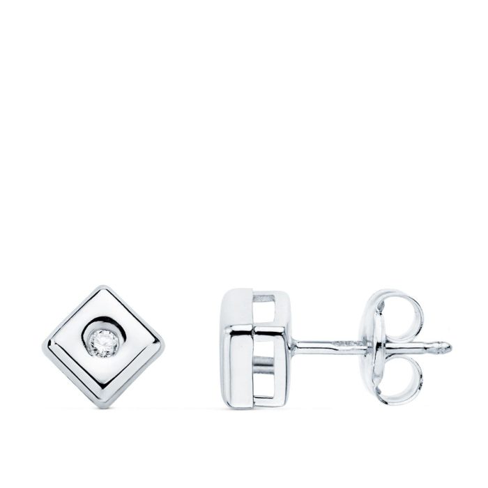 18K PENDIENTES CHATON CUADRADO DIAMANTES 0.040 QTS. G-VS2 CIERRE PRESION