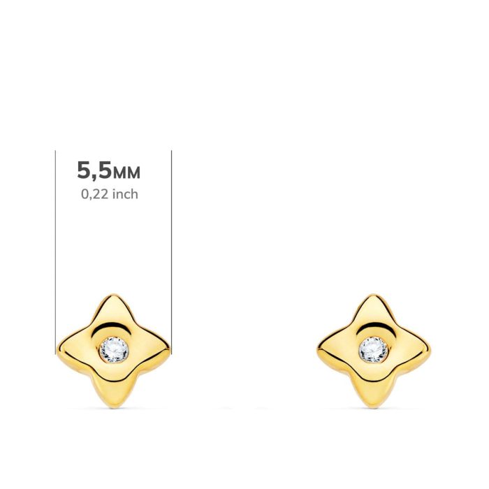 18K PENDIENTES ORO AMARILLO ESTRELLA 5.5X5.5 MM DIAMANTE 0.040 QT. G-VS2.