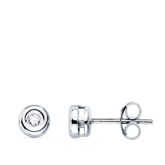 18K PENDIENTES ORO BLANCO 2 DIAMANTES SI-H 0.07 QTS. 4.8 MM CIERRE PRESION