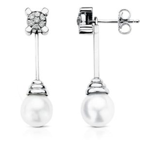 18K PENDIENTES ORO BLANCO DIAMANTES TALLA BRILLANTE 4.5MM 0.05 QTS.