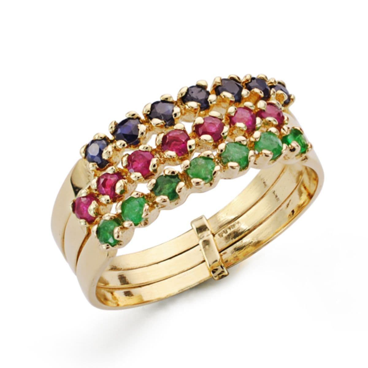 9K SORTIJA ORO AMARILLO 3 AROS CON ZAFIRO RUBI ESMERALDA
