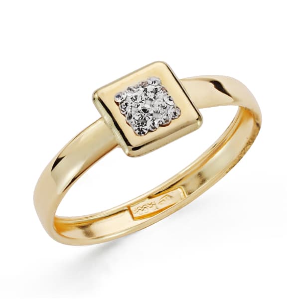 9K SORTIJA ORO AMARILLO BANDA CON MOTIVO CUADRADO Y CIRCONITAS