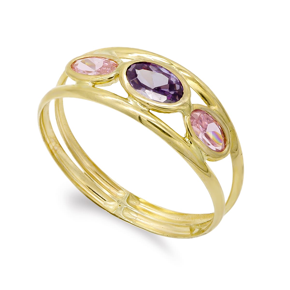 9K SORTIJA ORO AMARILLO PIEDRAS AMATISTA Y ROSA