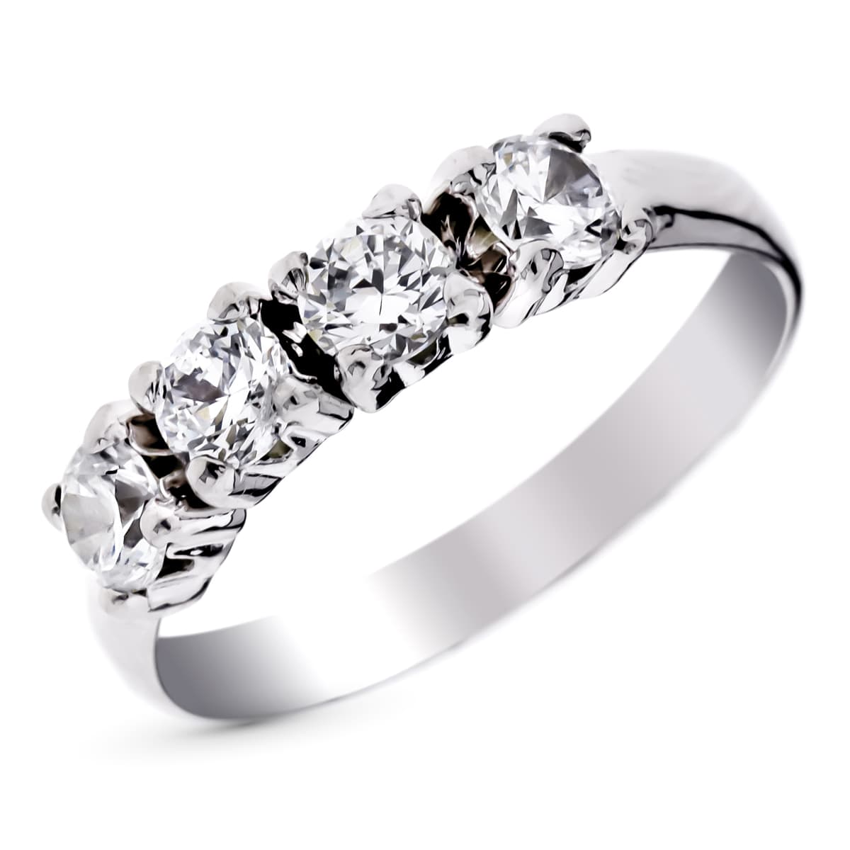 9k SORTIJA ORO BLANCO CARRIL GARRAS CUATRO CIRCONITAS 4 MM