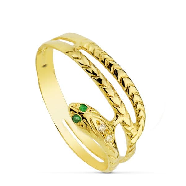 Sumérgete en el resplandor eterno con esta Sortija de Oro de Ley de 9 Kilates. Cada faceta de 9K SORTIJA SERPIENTE CIRCONITAS refleja la elegancia atemporal y la artesanía excepcional. Un símbolo de distinción, esta joya fusiona la belleza intrínseca del oro con un diseño refinado para coronar tus momentos con un toque de lujo inigualable. Además esta Sortija está fabricada por el prestigioso fabricante de joyería Pérez Mora de Córdoba, cuna de la joyería de Oro en España.