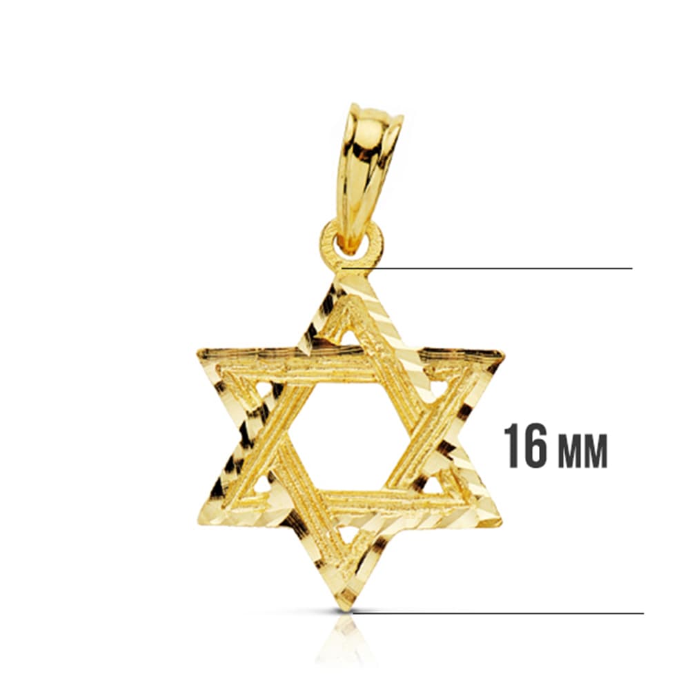 Sumérgete en la opulencia con un colgante de Oro de Ley de 9 Kilates, donde cada detalle reluce con elegancia eterna. Fusiona la distinción del oro puro con la artesanía exquisita. Este 9K ESTRELLA DE DAVID 18X14 MM no solo adorna, sino que también eleva cada ocasión con un resplandor único y duradero. Brilla con autenticidad. Además este Colgante está fabricado por el prestigioso fabricante de joyería Pérez Mora de Córdoba, cuna de la joyería de Oro en España.