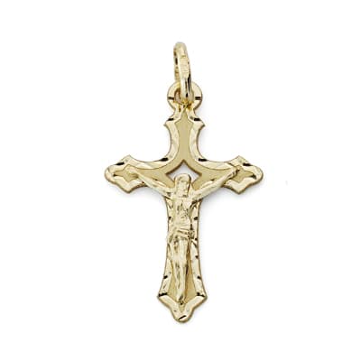 9K CRUZ ORO AMARILLO CRISTO TALLADA 22X14 MM