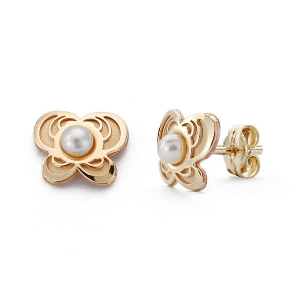 9K PENDIENTES ORO AMARILLO MARIPOSA PERLITA 9X7 MM