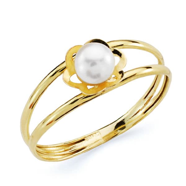 9K SORTIJA FLOR PERLA 4.5 MM