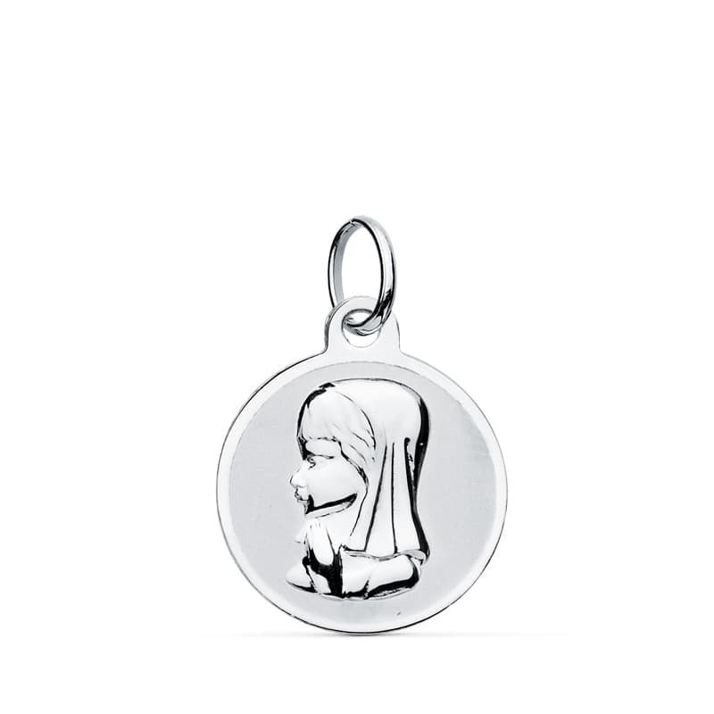 9K MEDALLA ORO BLANCO VIRGEN NIÑA 14 MM