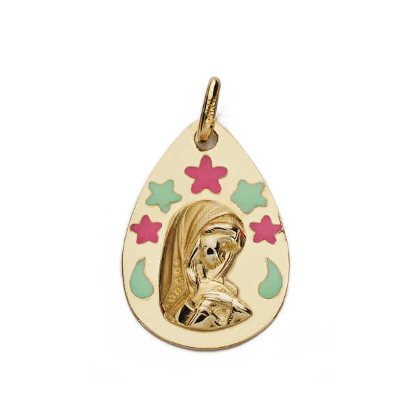 9K MEDALLA VIRGEN NIÑA ESMALTE 19X13 MM