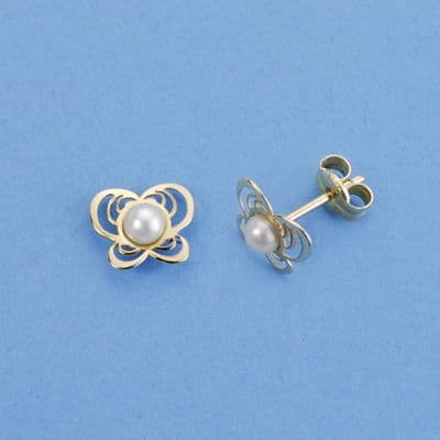 9K PENDIENTES ORO AMARILLO MARIPOSA 8X7 MM( PEDIDO MINIMO 3 PARES )