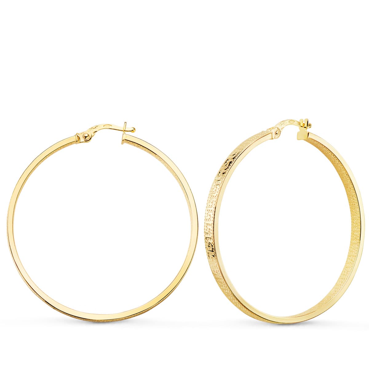 9K AROS ORO AMARILLO HUECOS CON GRECA 39 MM TUBO RECTANGULAR 3X1.2 MM