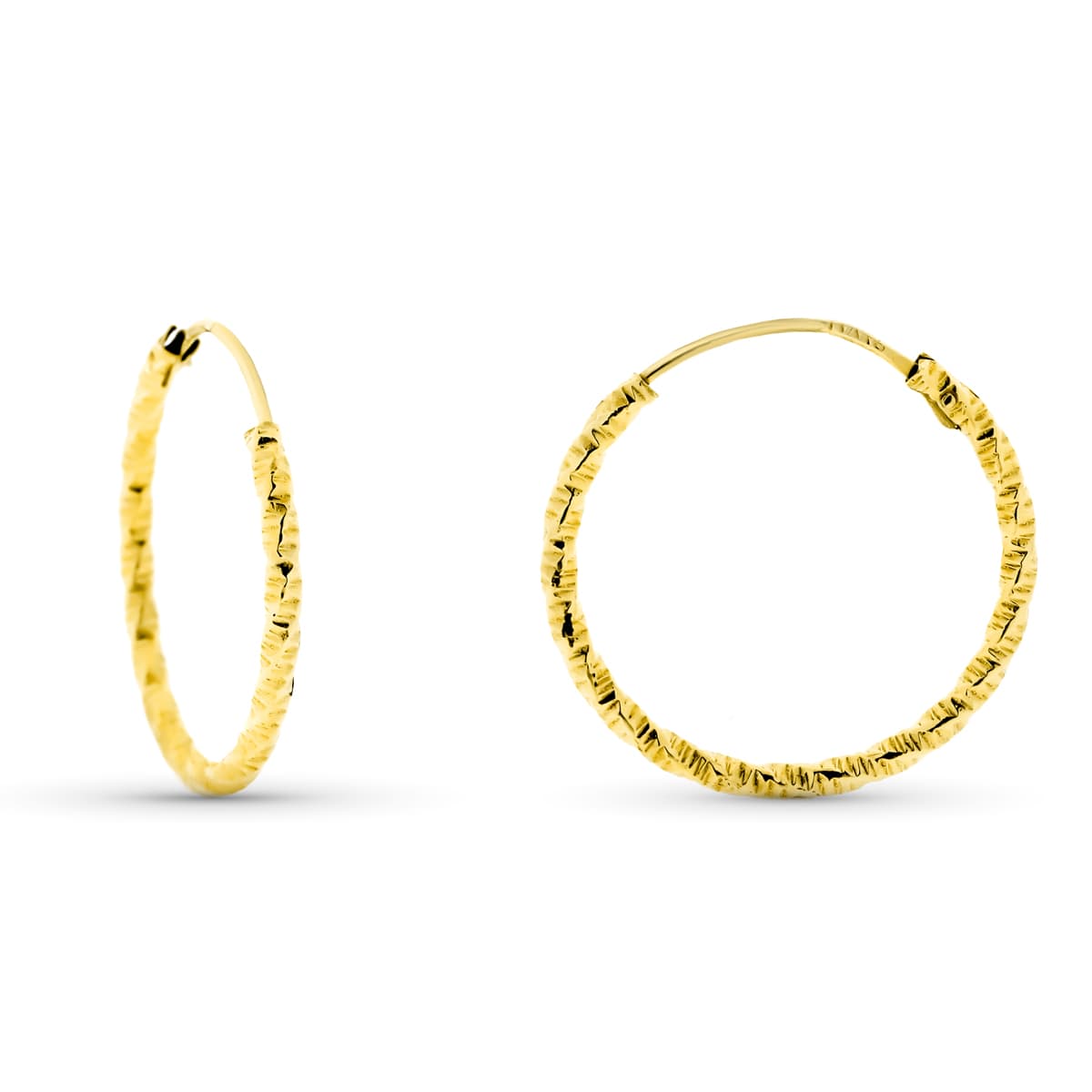 9K AROS ORO AMARILLO HUECOS RETORCIDOS. 16X1.3 MM