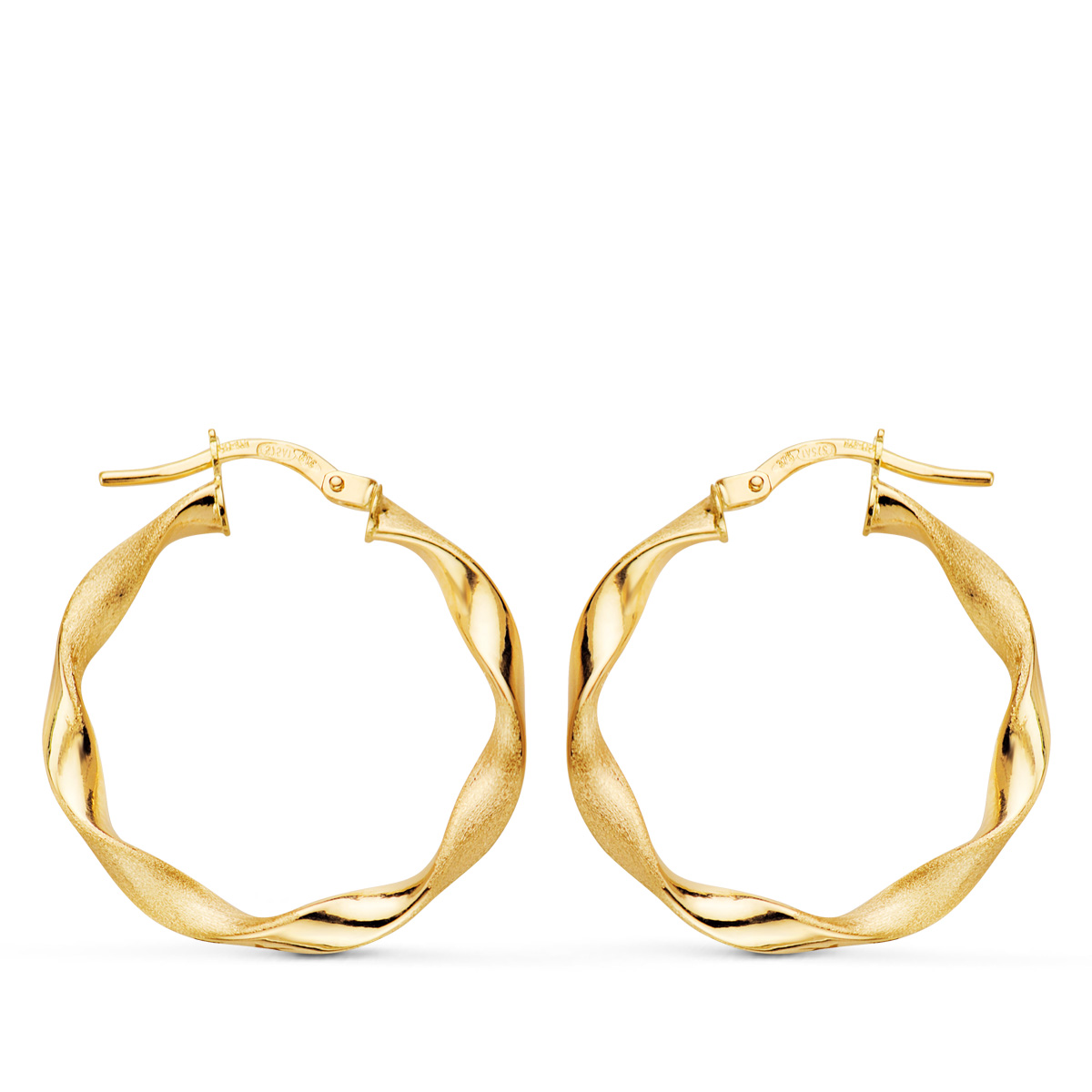 9K AROS ORO AMARILLO HUECOS RETORCIDOS MATE Y BRILLO 24X2.5 MM