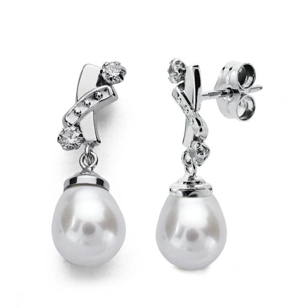 9K PENDIENTES 9KTES ORO BLANCO PERLA 22X7 MM