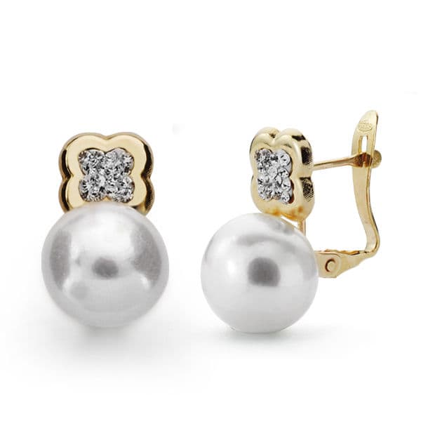 9K PENDIENTES FLOR Y PERLA 16X9 MM