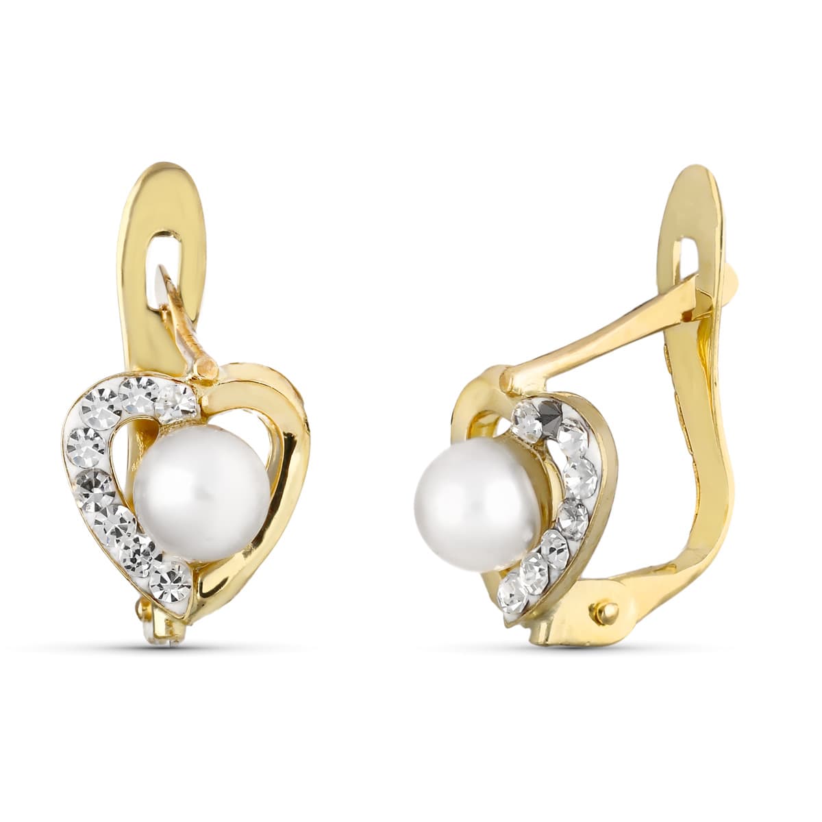 9K PENDIENTES ORO AMARILLO CORAZON CON CIRCONITAS 8X7 MM CIERRE CATALAN