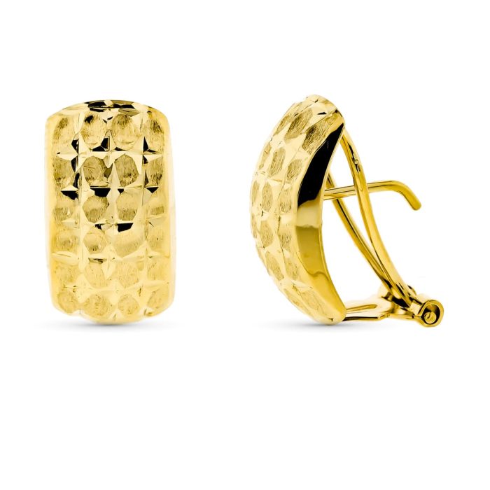 9K PENDIENTES ORO AMARILLO TALLADOS LAPIDADOS 17X9 MM CIERRE OMEGA