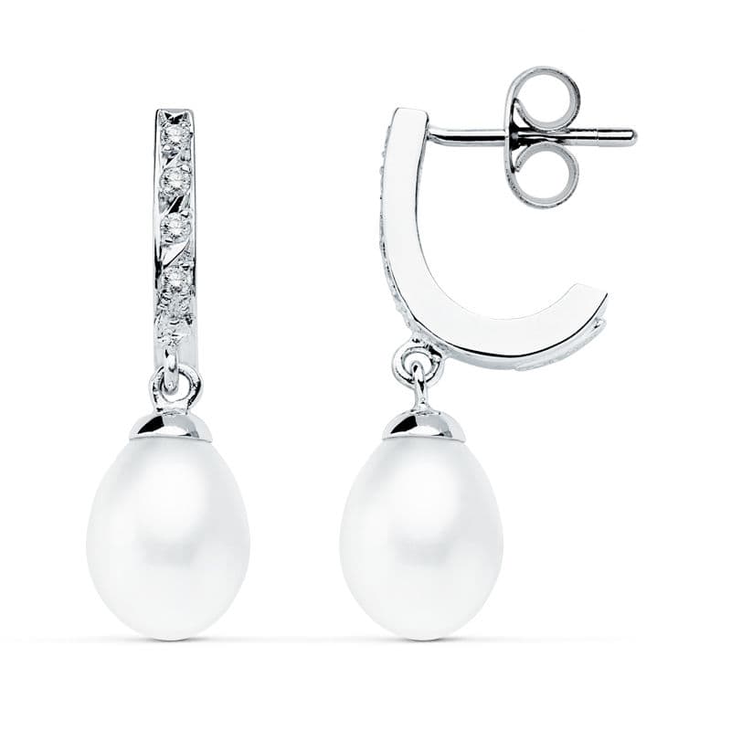 9K PENDIENTES ORO BLANCO PERLA 25X7 MM