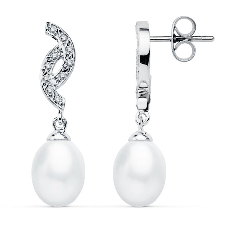 9K PENDIENTES ORO BLANCO PERLA 30X9 MM