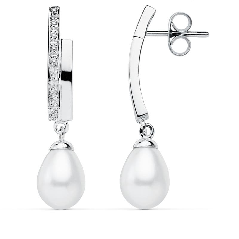 9K PENDIENTES ORO BLANCO PERLA 32X8 MM
