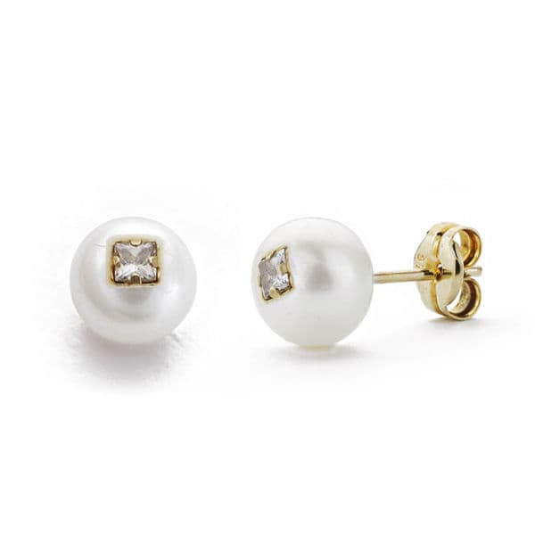 9K PENDIENTES PERLA CIRCONITA 6 MM