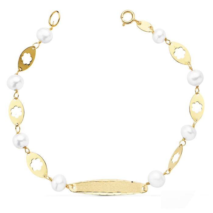 9K ESCLAVA 9K PERLA Y MOTIVOS. 17 CM