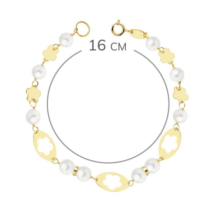 9K PULSERA PERLA Y MOTIVOS. 17 CM